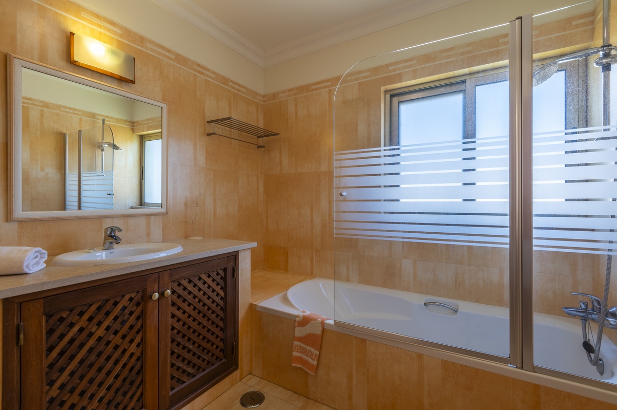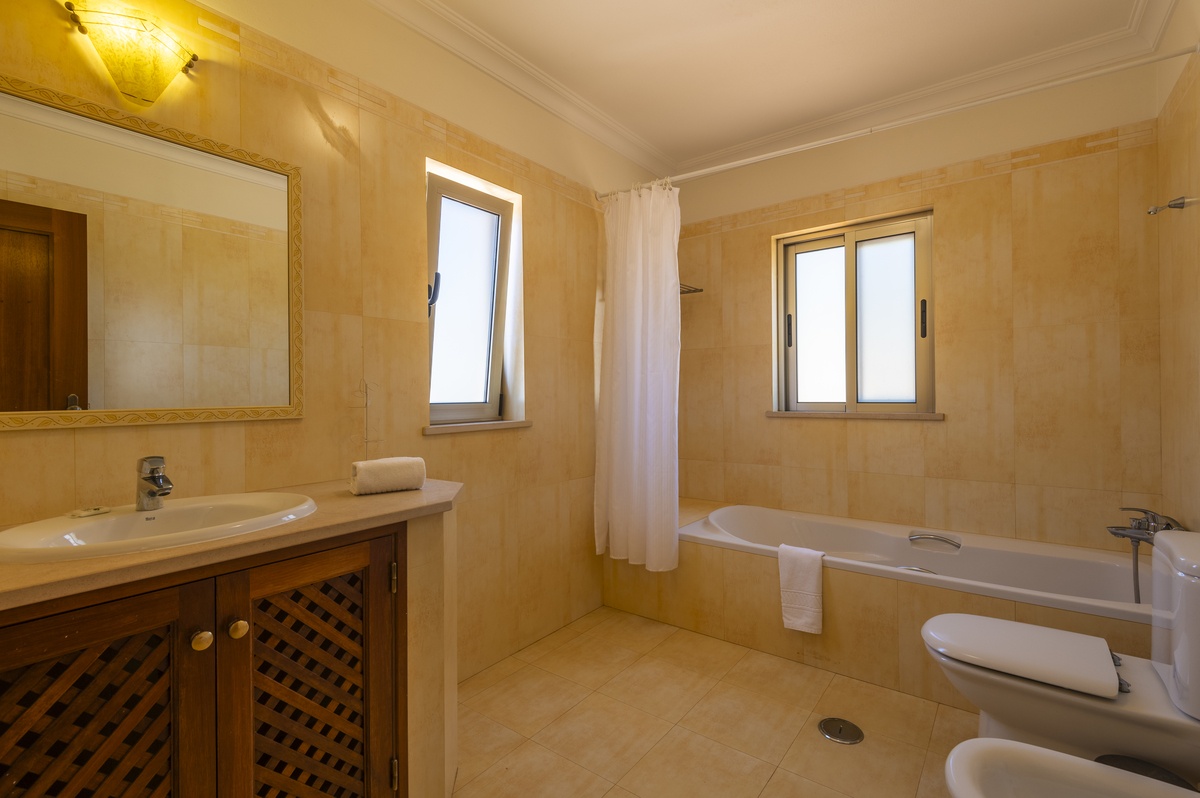 Villa Joana is a three-bedroom villa, with two double bedrooms and one twin bedroom. Each bedroom has its own en-suite bathroom, with a shower, toilet, and sink.
