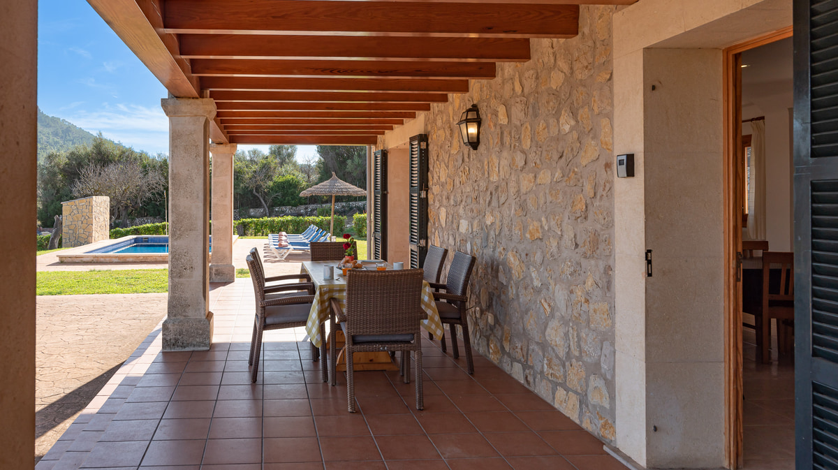 Outdoors Can Baussana is surrounded by well kept lawns. With a large shaded terrace and a relaxing pool area.
