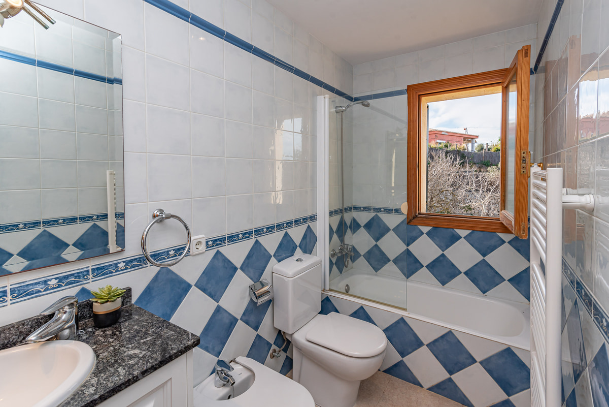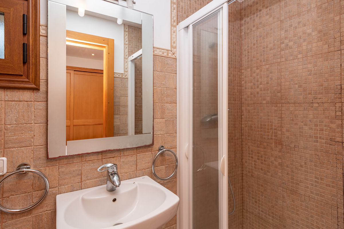 On the ground floor, a double bedroom with en suite shower and direct access to the garden. Upstairs, there are two more comfortable bedrooms, each with its own bathroom. The highlight here is the expansive balcony, step out and take in the amazing views.